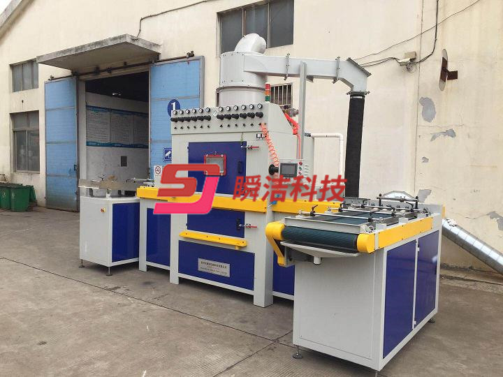 2、操作時將工件放在輸送帶上、噴砂作業(yè)自動完成,十分簡單方更。
