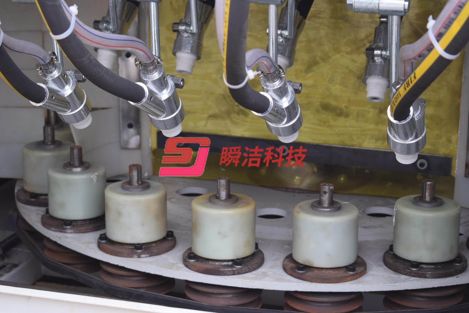 1、 本設(shè)備可采用6-12噴槍設(shè)計(jì),噴槍設(shè)置上下兩組,噴砂上下擺動(dòng),噴槍360度可調(diào),保證產(chǎn)品表面均勻噴砂,無死角,成品率100%。
