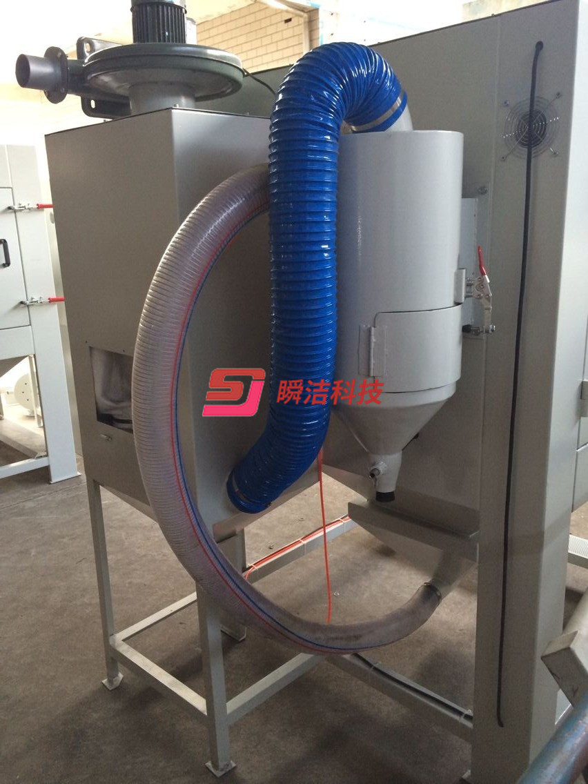 7、高效率旋風(fēng)分離器,置于分離器下方之微調(diào)調(diào)節(jié)閥,操作方便,可微調(diào)分離150#-320#間砂材的取舍,讓使用者在省砂的要求下,更能夠達(dá)到射流強而穩(wěn)定,而其主要功能為有效的分離砂塵,不僅提高了工件加工面的穩(wěn)定性及縮短了加工時間,也因此能比其他機種節(jié)省了30%以上的砂材。