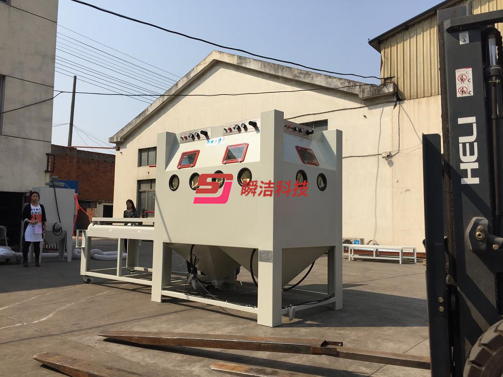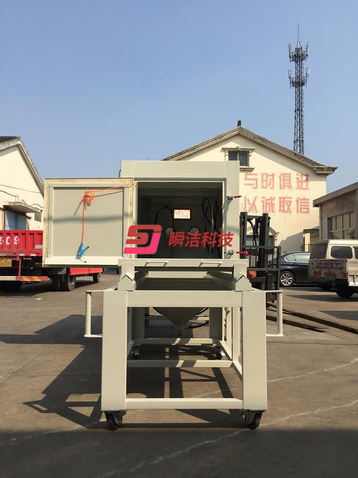 3、配備活動臺車,和轉(zhuǎn)盤,操作時將工件放在轉(zhuǎn)盤上,然后推入機(jī)內(nèi)即可噴砂作業(yè),操作簡單省力。