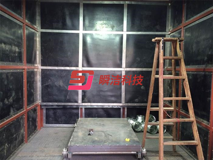 10、噴砂(丸)房室體采用聚苯乙烯發(fā)泡塑料夾心彩板房組成,具有消音功能,美觀、堅固、密閉。